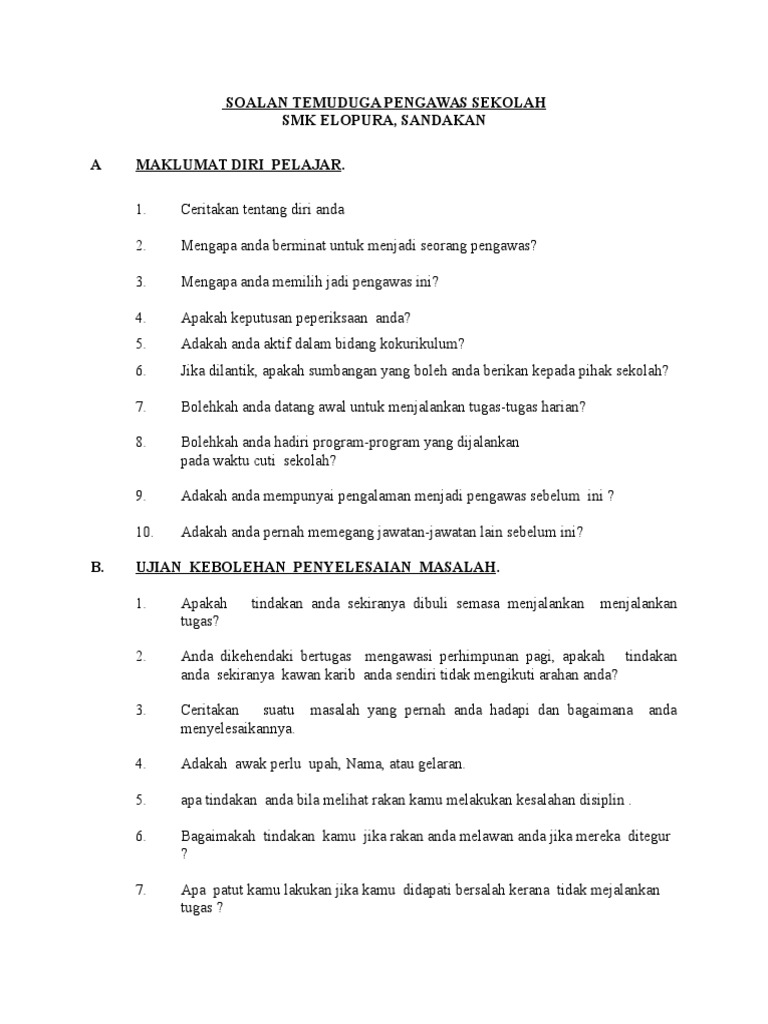 Tips Soalan Temuduga Pengawas Sekolah Pdf
